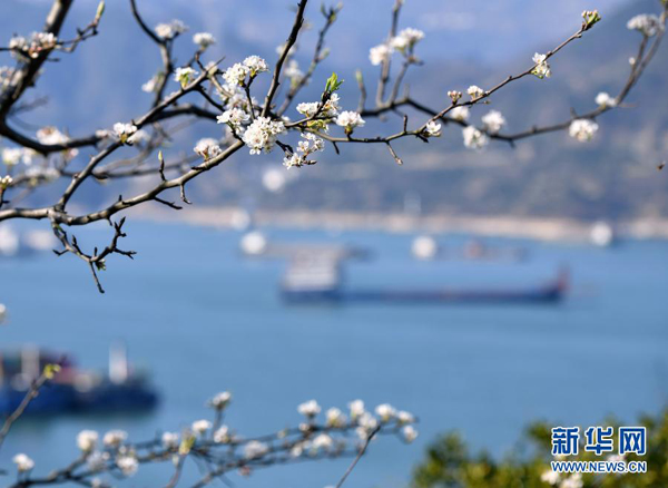 隨著氣溫回升,三峽庫區(qū)湖北省秭歸縣沿江兩岸春花爛漫,景色如畫。