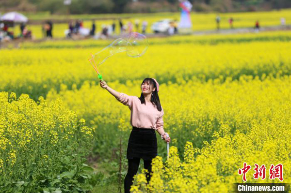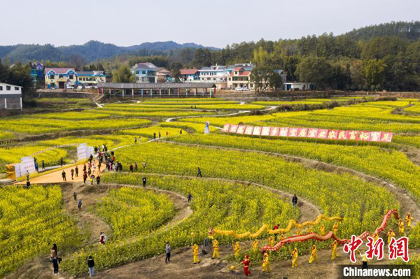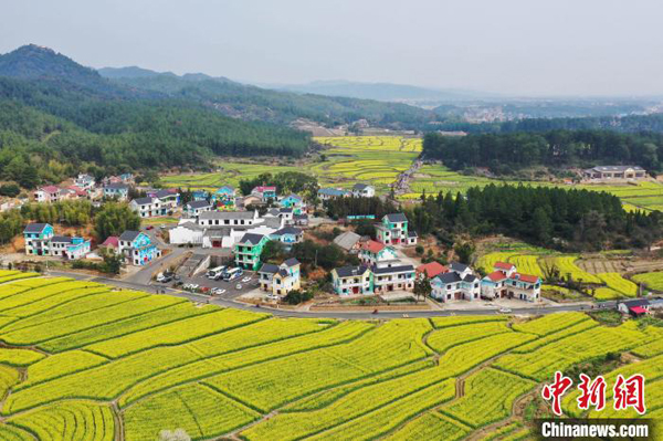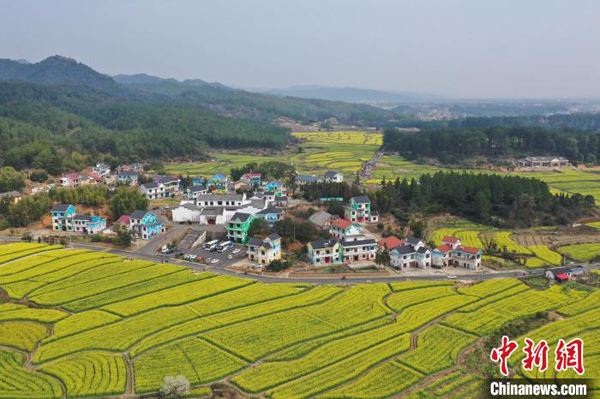 2月21日,空中俯瞰江西省萬安縣田北農(nóng)民畫村景區(qū)美景。春日時(shí)節(jié),萬安縣各地的油菜花盛開,與美麗鄉(xiāng)村共同勾勒出一幅春日田園畫卷,美不勝收。當(dāng)?shù)匾悦利愢l(xiāng)村建設(shè)為契機(jī),大力發(fā)展鄉(xiāng)村旅游,促進(jìn)鄉(xiāng)村振興。