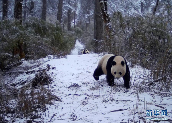 這是紅外相機(jī)拍攝到的野生大熊貓活動(dòng)畫面(資料圖片)。新華社發(fā)(甘肅白水江國家級(jí)自然保護(hù)區(qū)管理局供圖)