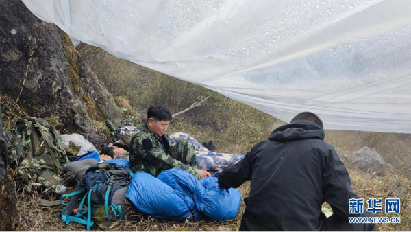 遇到極端天氣時(shí),開展野外巡護(hù)工作的護(hù)林員在臨時(shí)搭建的休息區(qū)內(nèi)休息(資料圖片)。新華社發(fā)