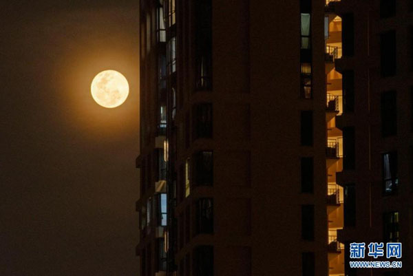 新加坡:“超級(jí)月亮”現(xiàn)身夜空