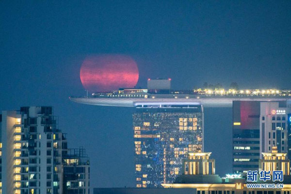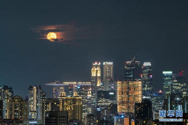4月27日,“超級(jí)月亮”出現(xiàn)在新加坡城市的天空。