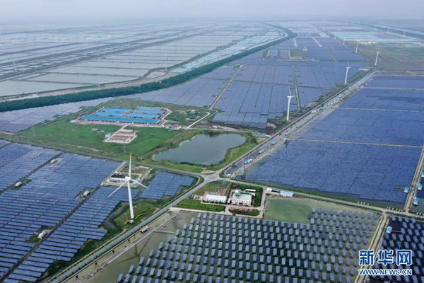 在江蘇省東臺(tái)市沿海灘涂綜合開發(fā)示范區(qū),集風(fēng)力發(fā)電、光伏發(fā)電、水面養(yǎng)殖為一體的“風(fēng)光漁”立體開發(fā)模式正在形成,實(shí)現(xiàn)灘涂資源的高效利用與生態(tài)開發(fā)。