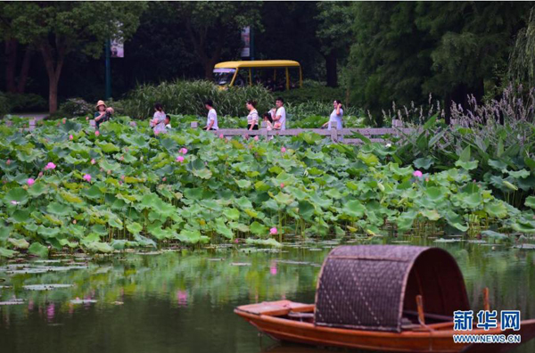 6月14日,游客在江蘇無錫太湖黿頭渚風(fēng)景區(qū)游玩。