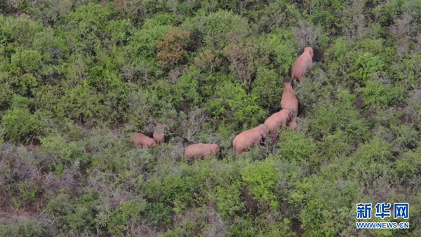 6月22日在云南省玉溪市峨山縣大龍?zhí)多l(xiāng)附近拍攝的象群(無(wú)人機(jī)視頻截圖)。
