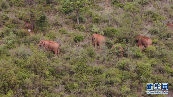 云南北移亞洲象群向南遷移返回峨山縣