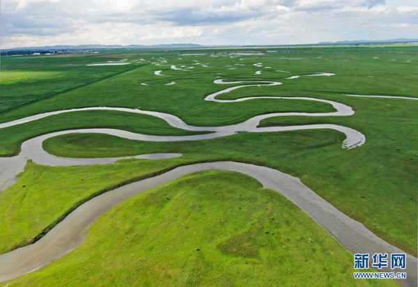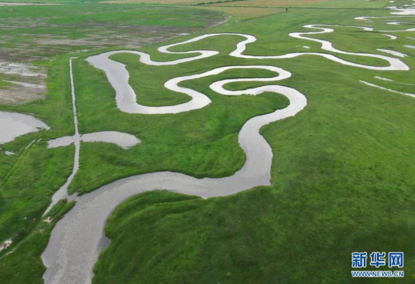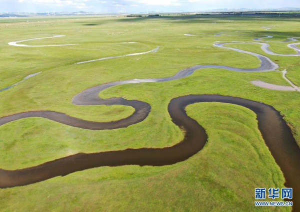 今夏雨水豐沛,在河北省張家口市塞北管理區(qū),曲折蜿蜒的灤河水猶如絲帶盤(pán)繞在綠色的草原上,美若畫(huà)卷。