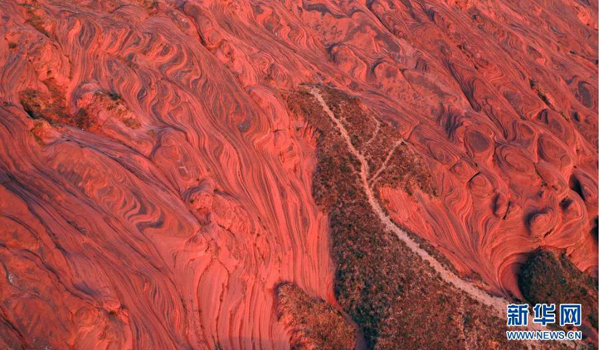 陜西省靖邊縣龍洲鎮(zhèn)波浪谷丹霞景區(qū)地處陜北黃土高原,峽谷四面環(huán)山,線谷、巷谷、絕壁等構成了特有的波浪形砂巖地貌,景觀獨特。