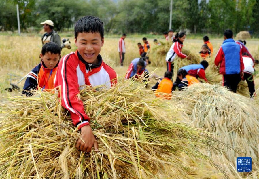 時下正值青稞成熟的季節(jié),西藏日喀則市上海實(shí)驗(yàn)學(xué)校40余名師生來到日喀則市甲措雄鄉(xiāng),參與當(dāng)?shù)氐那囡崭?,?ldquo;思政課”上在青稞地里。學(xué)生們在實(shí)踐中體會勞動的艱辛,在收獲中感受勞動的快樂。
