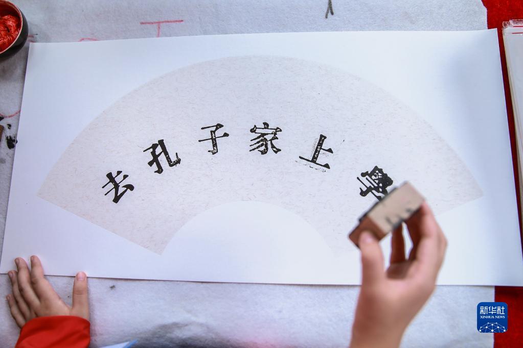 9月25日,滬臺(tái)學(xué)子在活動(dòng)上體驗(yàn)拓印。新華社發(fā)