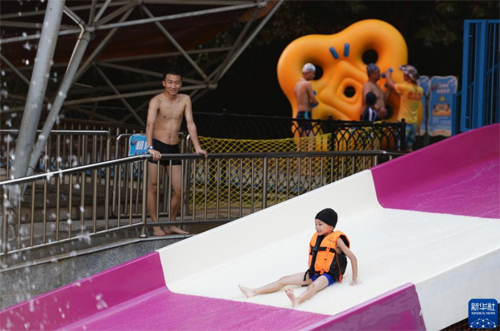 10月2日,游客在長沙世界之窗水上樂園游玩。