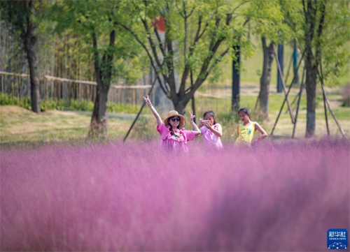 10月2日,人們在重慶市兩江新區(qū)粉黛山公園游玩。