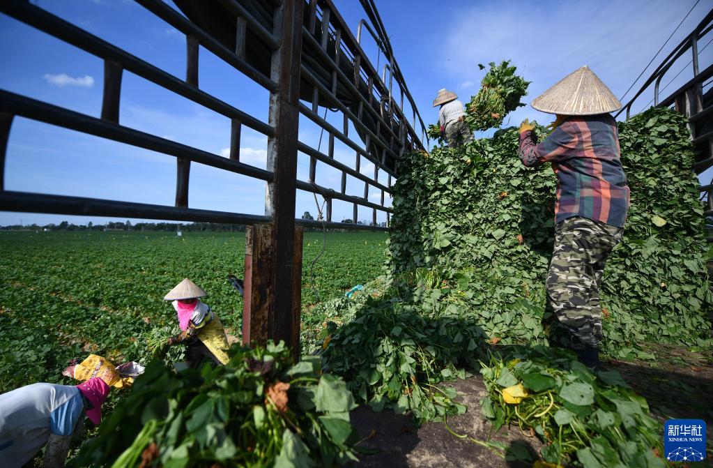 11月15日,東方市四更鎮(zhèn)沙村的農(nóng)民將地瓜苗裝車。新華社記者 郭程 攝