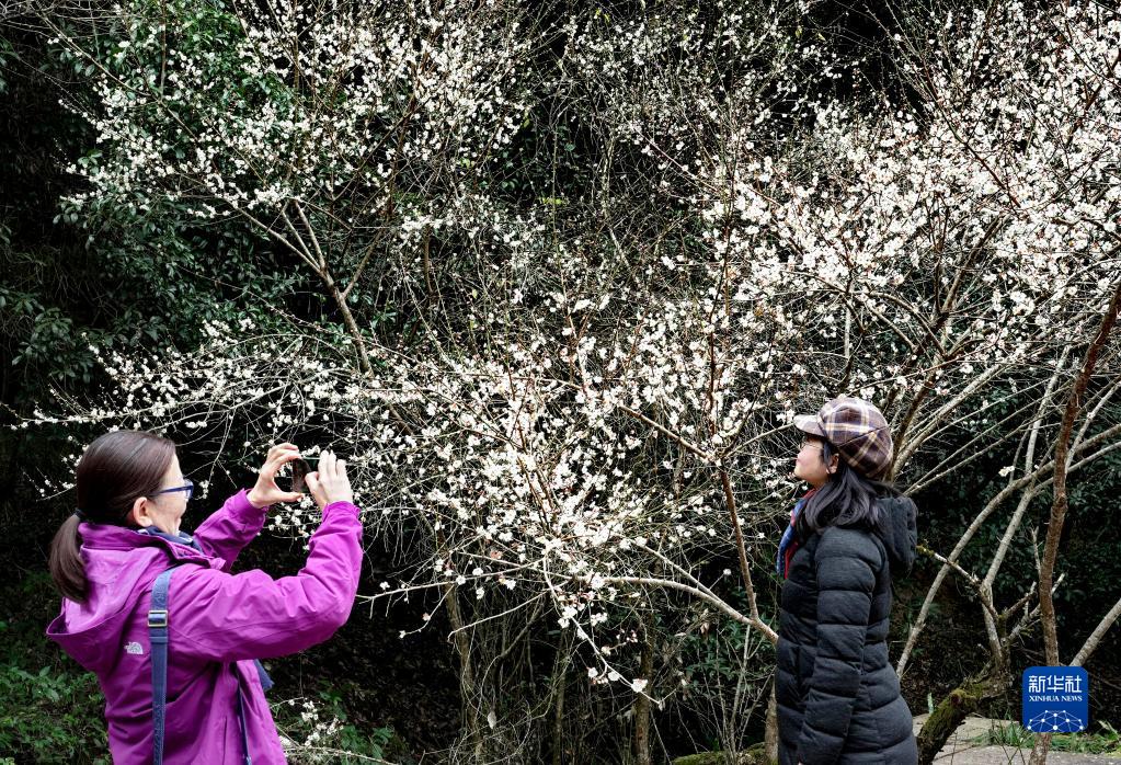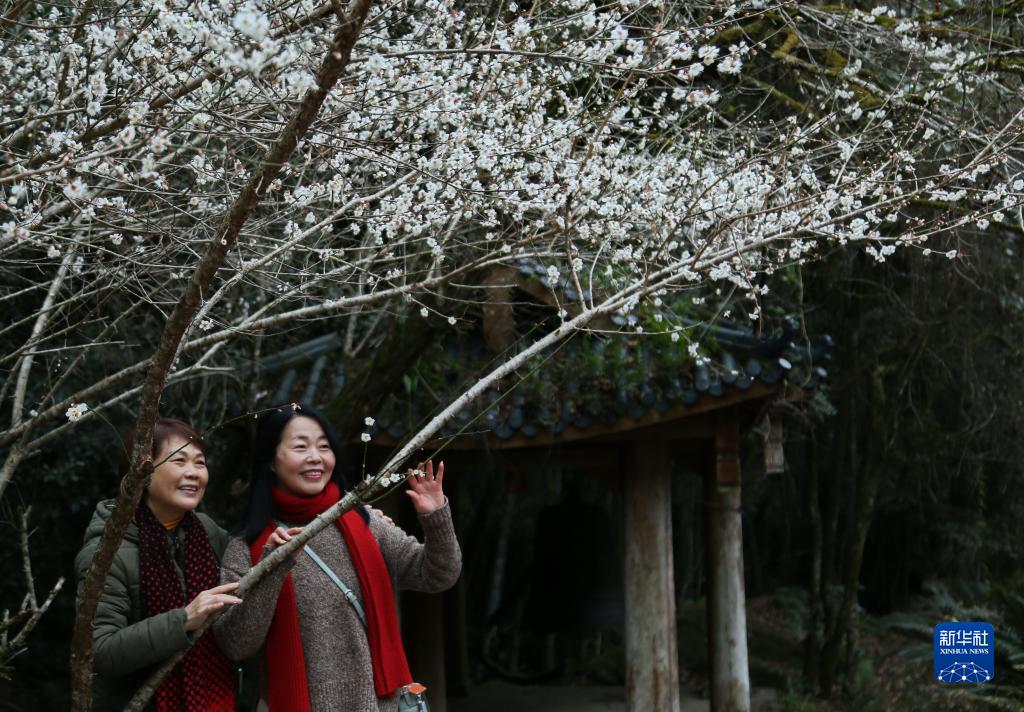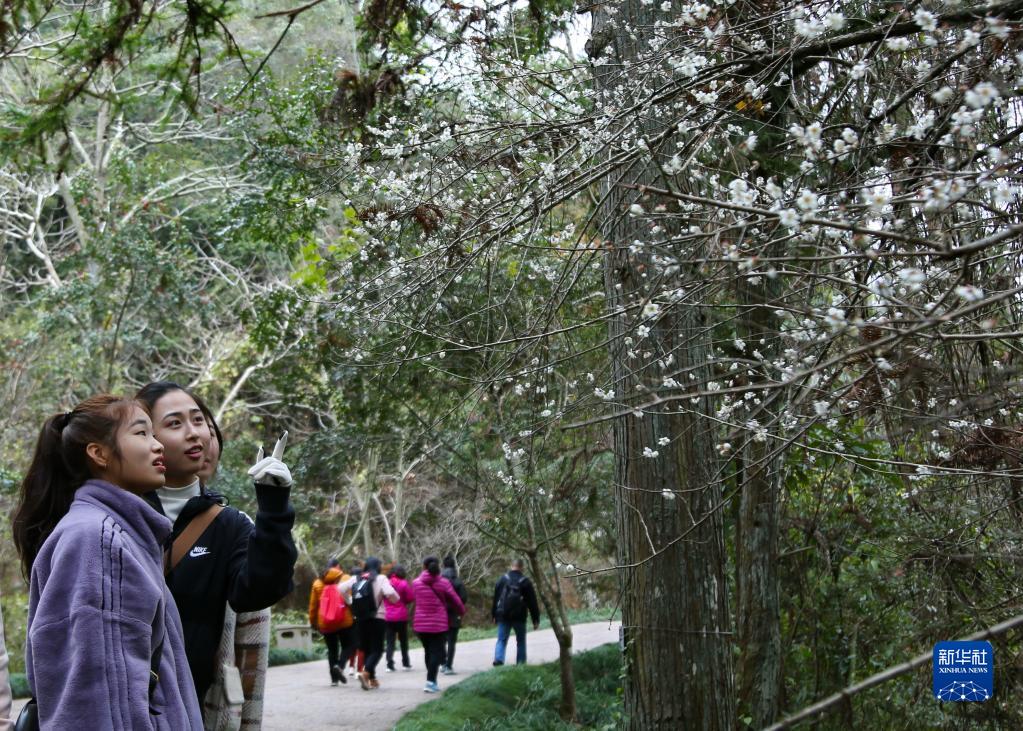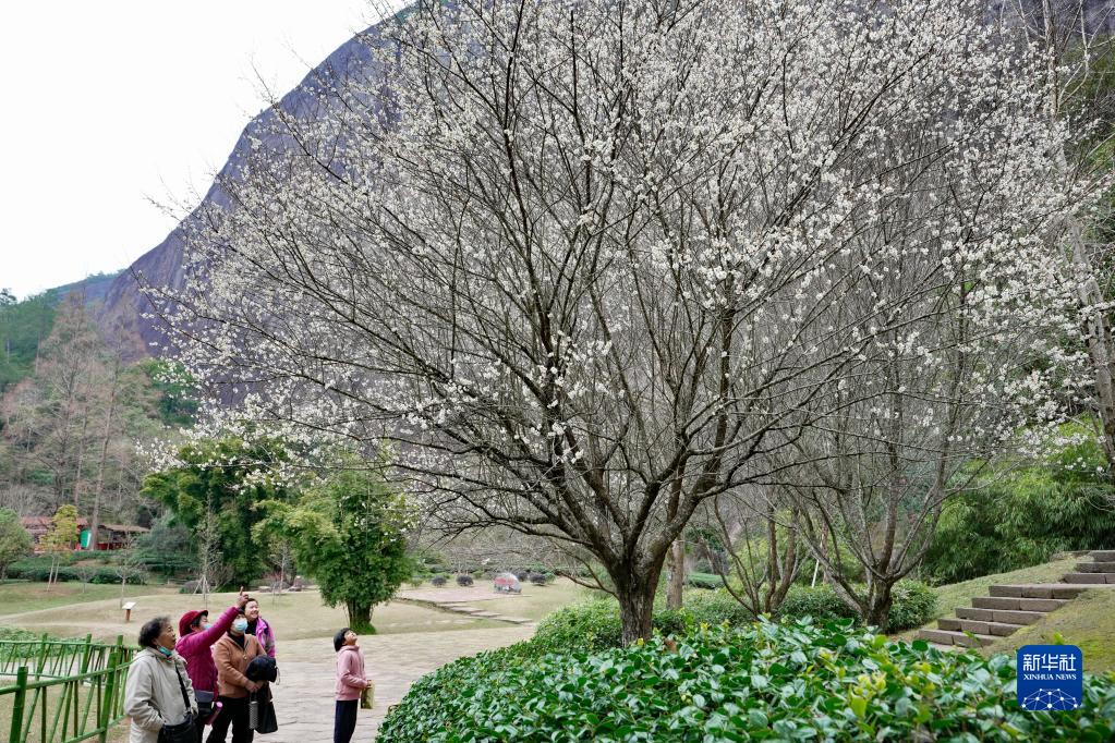 冬日時(shí)節(jié),福建武夷山國(guó)家公園內(nèi)的梅花相繼綻放,吸引眾多游人前來(lái)觀賞。