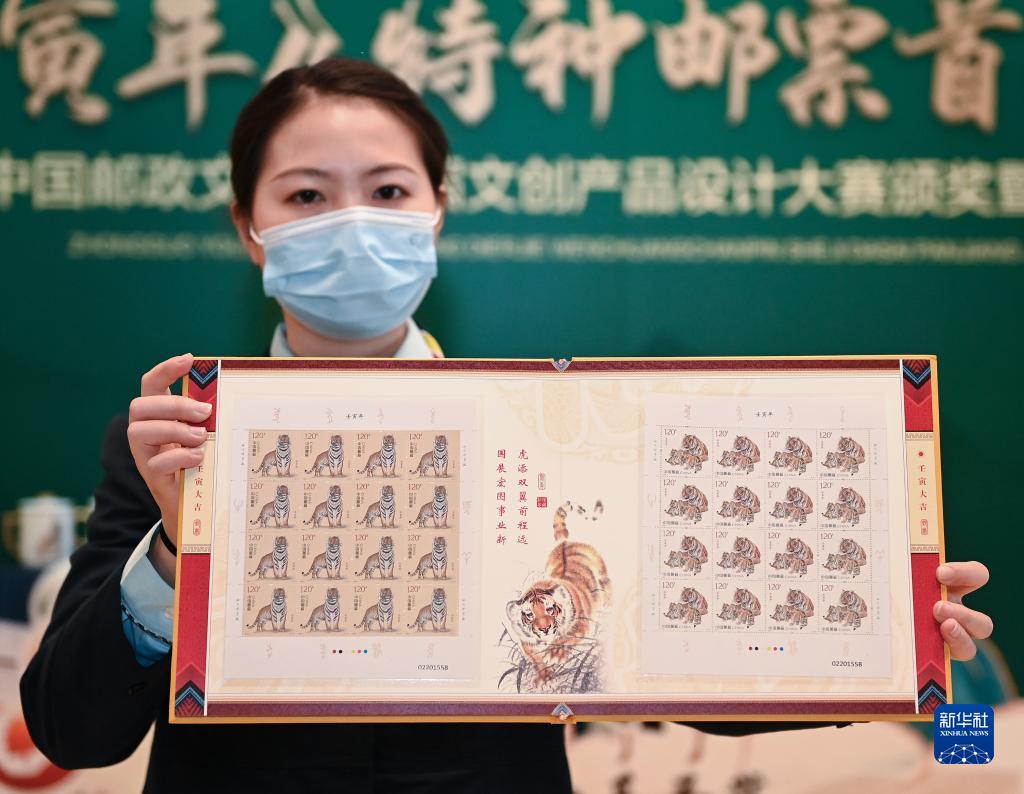 當(dāng)日,中國郵政《壬寅年》虎生肖郵票正式對外發(fā)行。2022年中國生肖郵票一套兩枚,分別為:國運(yùn)昌隆、虎蘊(yùn)吉祥,全套面值2.40元。