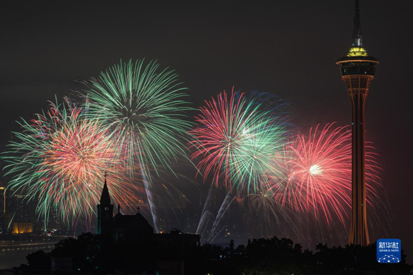 2月7日晚,澳門特區(qū)旅游局在旅游塔對開海面舉行新春煙花表演。新華社記者 張金加 攝