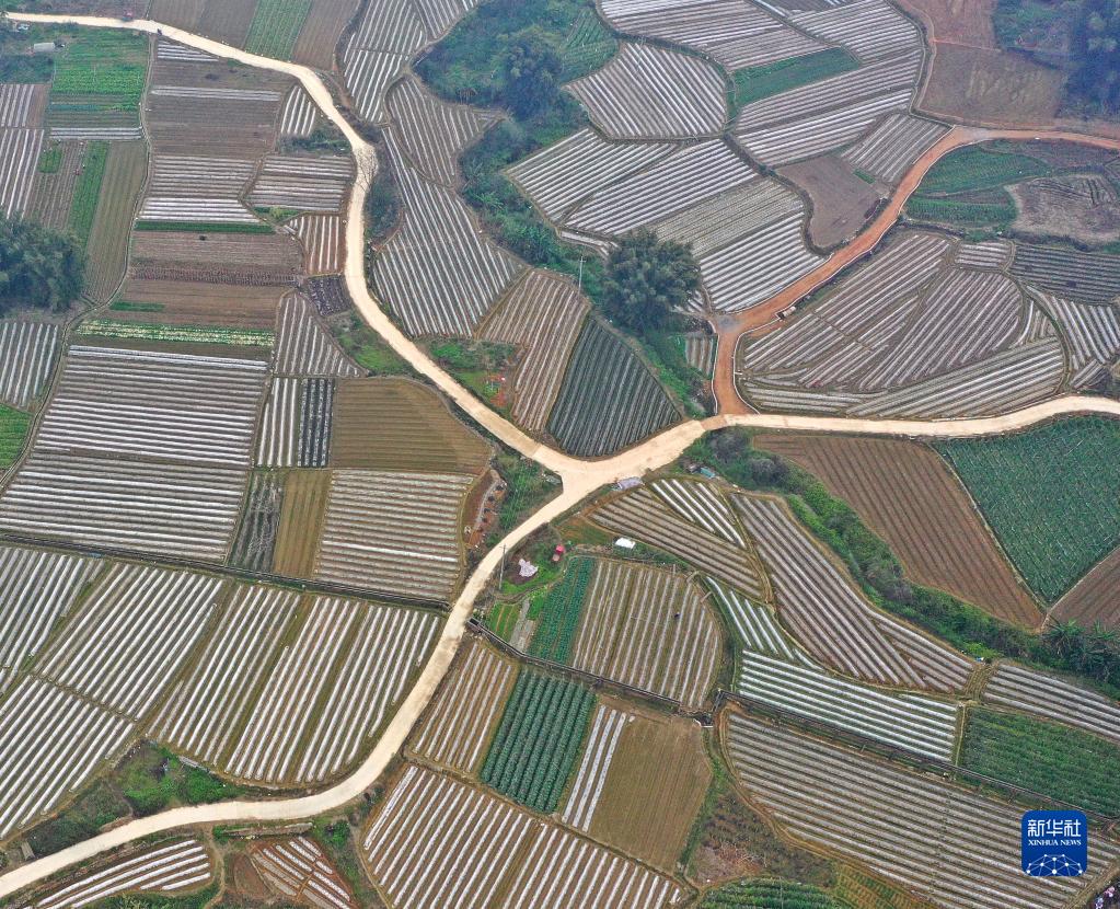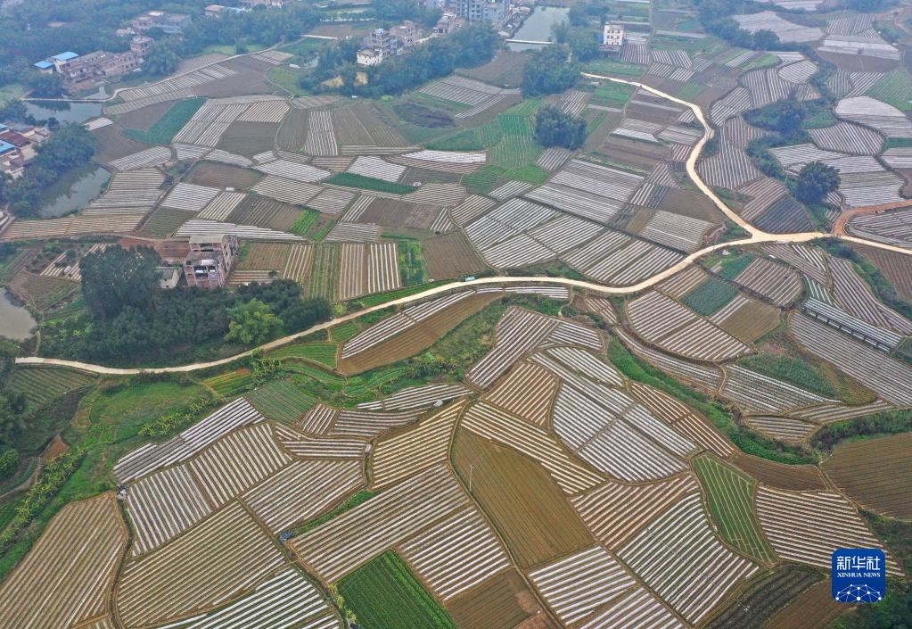 這是廣西南寧市興寧區(qū)五塘鎮(zhèn)田園春色(2月10日攝,無(wú)人機(jī)照片)。