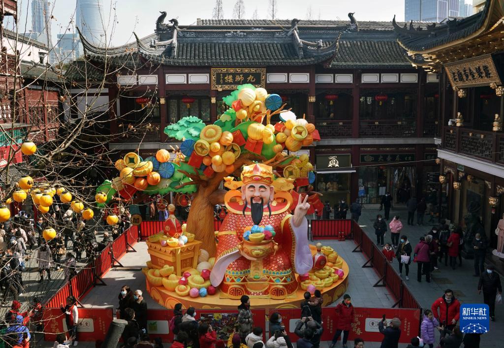 2月14日,游客在上海豫園參觀財(cái)神花燈。