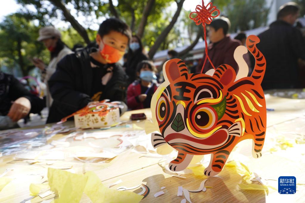 2月14日,在浙江省溫州市鹿城區(qū)蒲鞋市街道綠園社區(qū),小朋友在制作生肖虎燈籠。