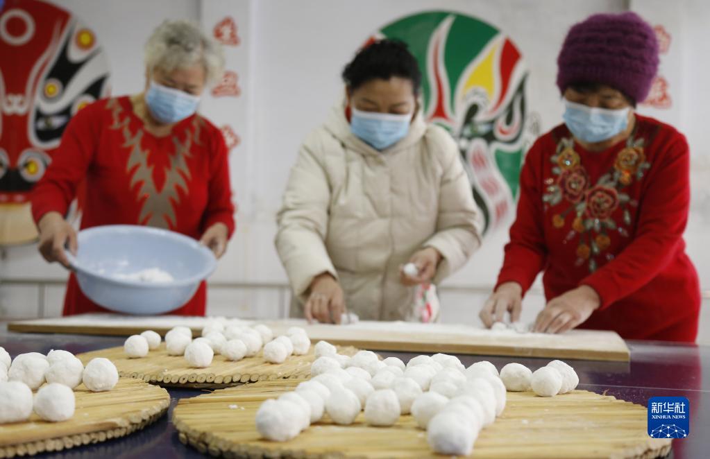 2月14日,在河北省邢臺(tái)市襄都區(qū)西大街街道,居民在制作元宵。