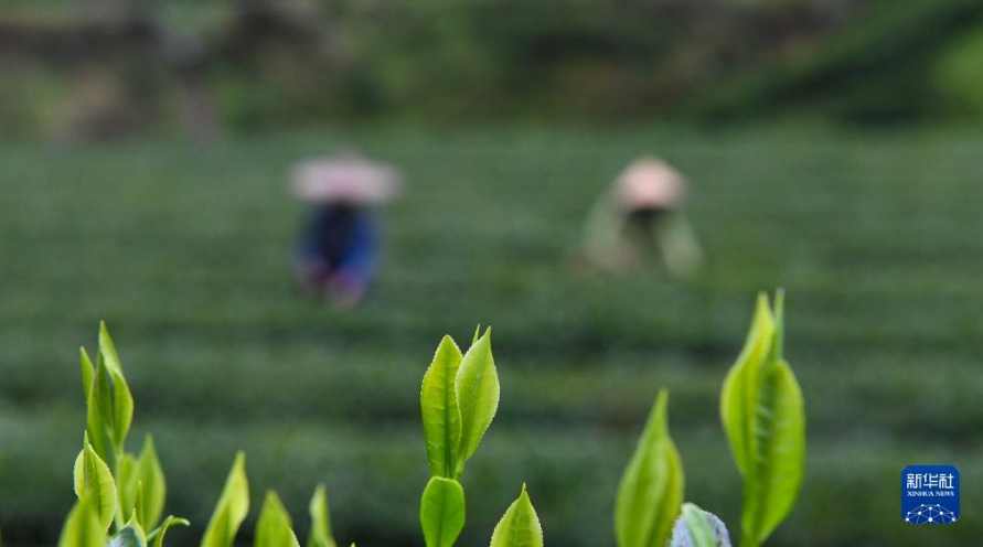 3月27日,在湖南省衡陽市常寧市塔山瑤族鄉(xiāng)塔山村,茶農(nóng)在采摘明前茶。