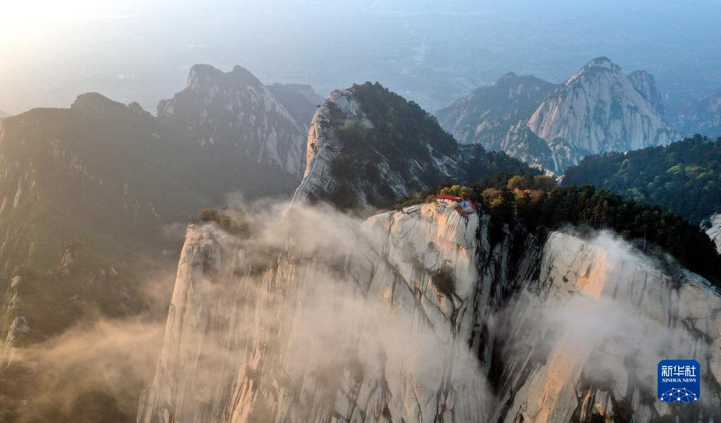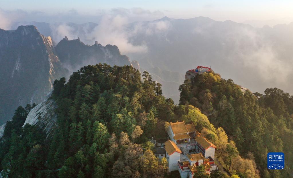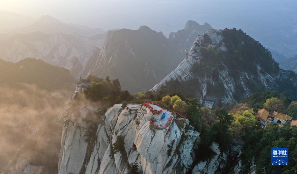夕陽下的華山(4月28日攝,無人機(jī)照片)。