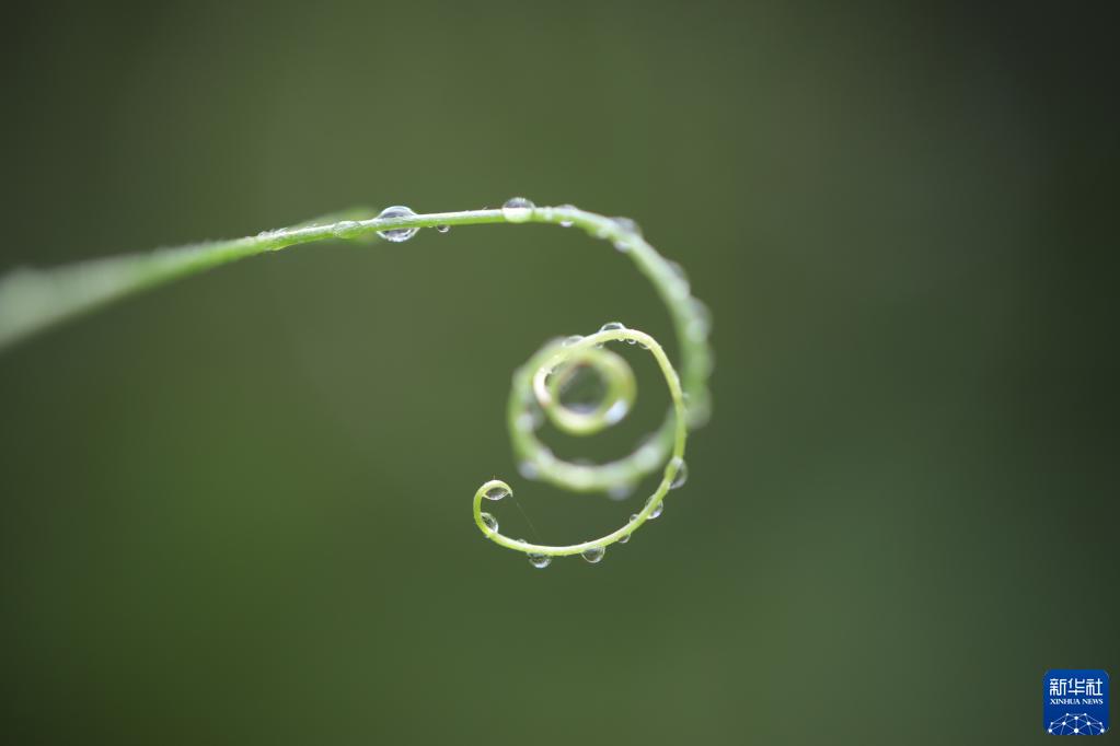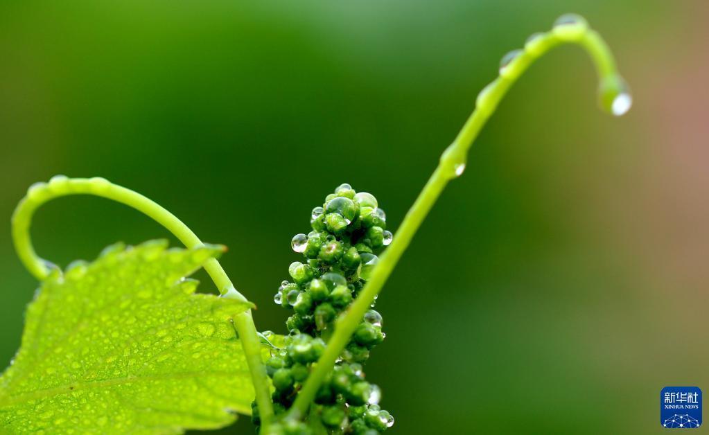 4月25日,在山東省鄒平市南部山區(qū),葡萄花序掛滿(mǎn)雨露。