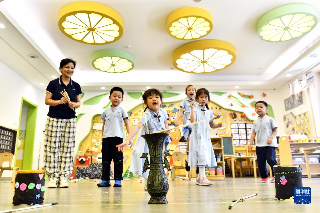 為讓幼兒從小感受中華傳統(tǒng)文化魅力,山東省實驗幼兒園通過項目化學(xué)習(xí)、舞臺傳經(jīng)誦典、挖掘節(jié)日文化、開展特色文化活動等形式,努力讓傳統(tǒng)文化沁潤童心,讓詩詞畫意陪伴快樂童年。新華社記者 郭緒雷 攝