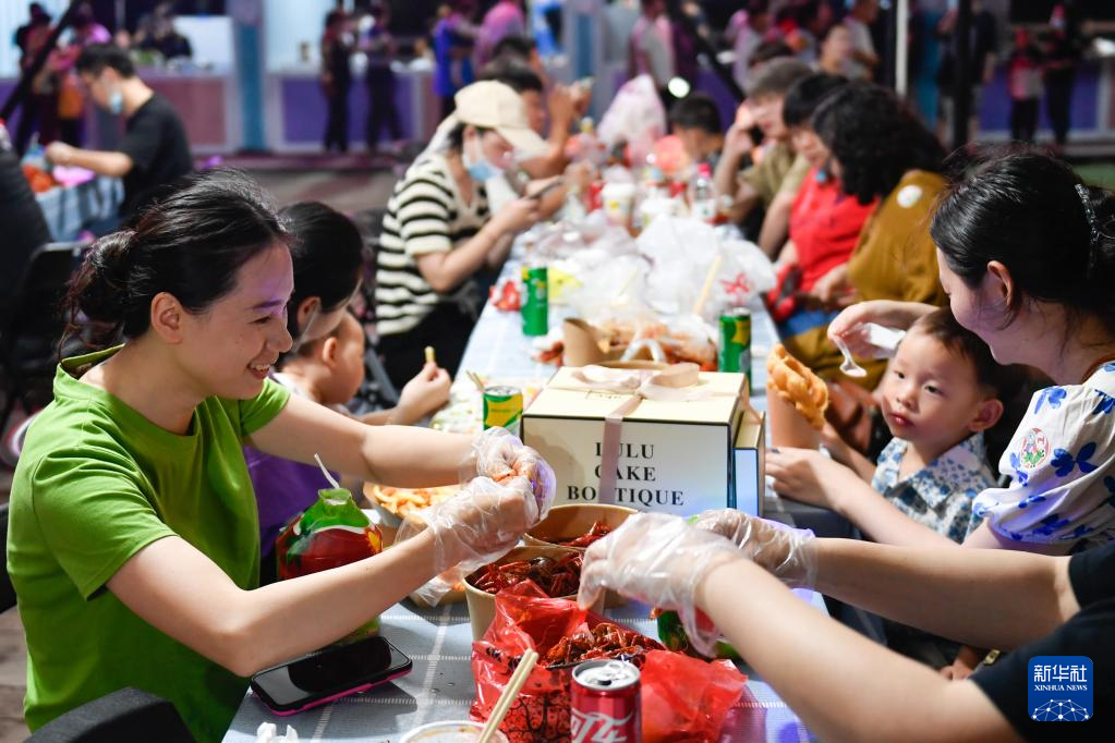 6月1日,游客在品嘗石淙清水小龍蝦。