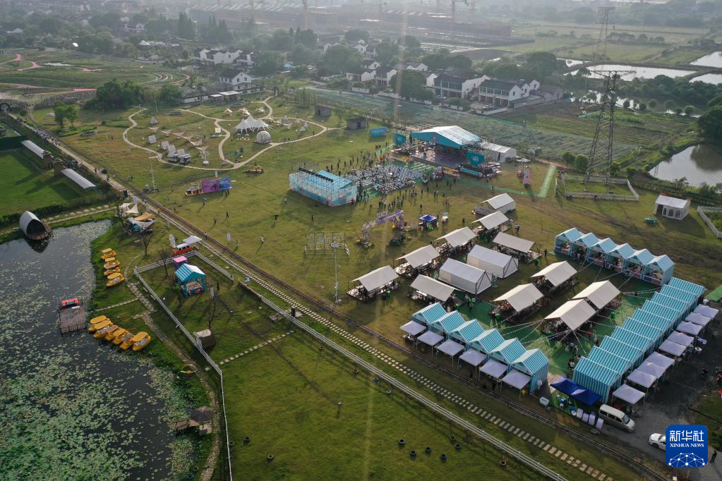 6月1日拍攝的第五屆石淙花海龍蝦節(jié)活動現(xiàn)場(無人機照片)。