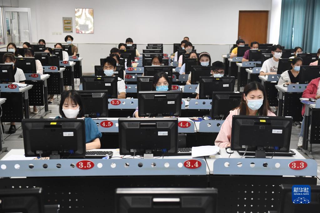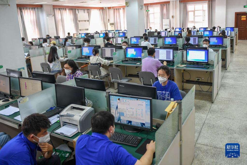 6月14日,在位于吉林長春的東北師范大學(xué)高考網(wǎng)上評(píng)卷點(diǎn),工作人員在評(píng)卷。據(jù)了解,2022年吉林省高考評(píng)卷工作全部采用電子掃描、網(wǎng)上評(píng)卷方式進(jìn)行。