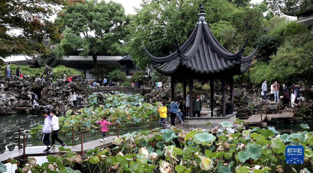 10月6日,游客在江蘇蘇州獅子林觀光游覽。