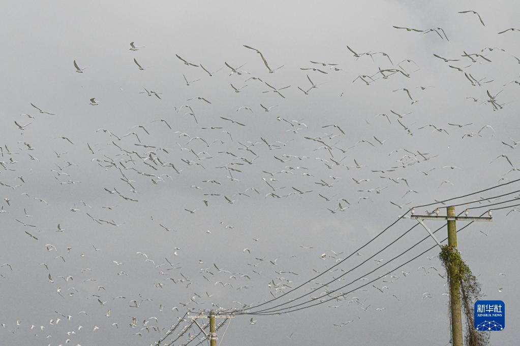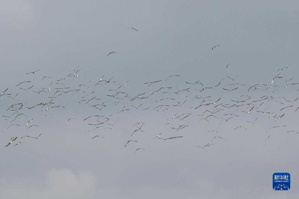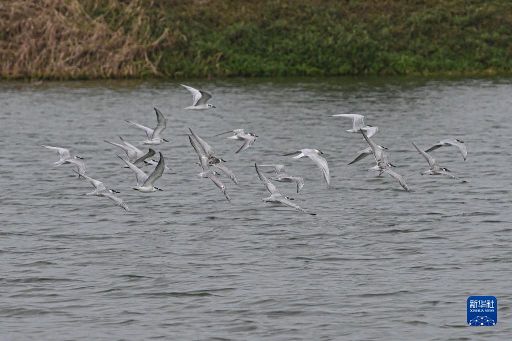 近期,不少候鳥進(jìn)入海南越冬。在首批“國際濕地城市”海口市的美蘭區(qū)一處濕地,大批前來越冬的須浮鷗呈現(xiàn)“萬鳥翔集”景象。鳥群時而群飛,時而整齊棲息,頗為壯觀。