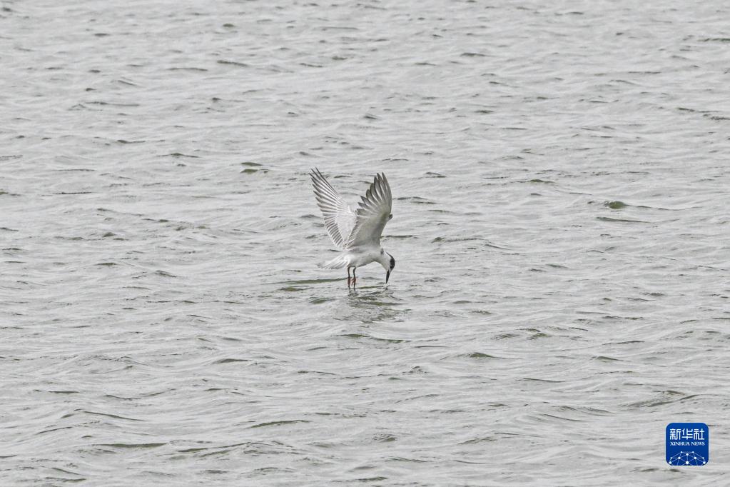 11月12日,須浮鷗在??谑忻捞m區(qū)一處濕地覓食。