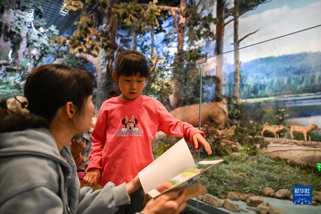 5月18日,參觀者在內(nèi)蒙古博物院參與親子故事匯活動。