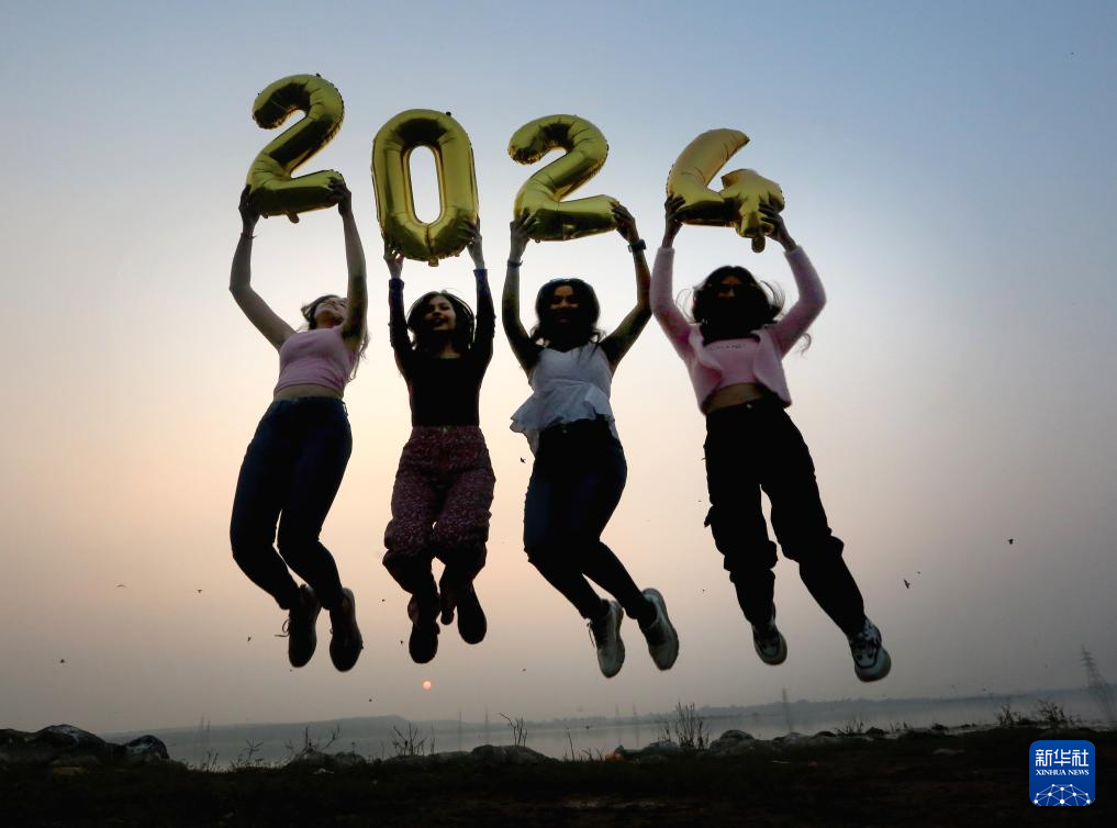 2023年12月31日,人們在印度博帕爾迎接新年的到來。