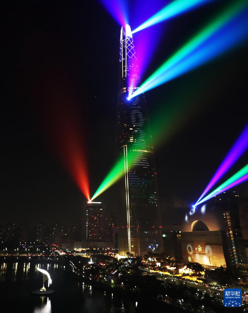 2024年1月1日凌晨,韓國首爾市地標建筑樂天塔舉行燈光秀慶祝新年。