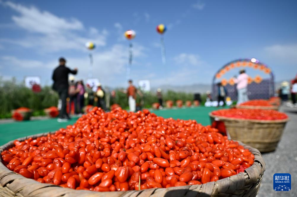 當(dāng)日,寧夏第七屆枸杞產(chǎn)業(yè)博覽會(huì)枸杞開(kāi)園節(jié)在位于賀蘭山東麓的百瑞源殷紅子熟枸杞莊園開(kāi)幕。