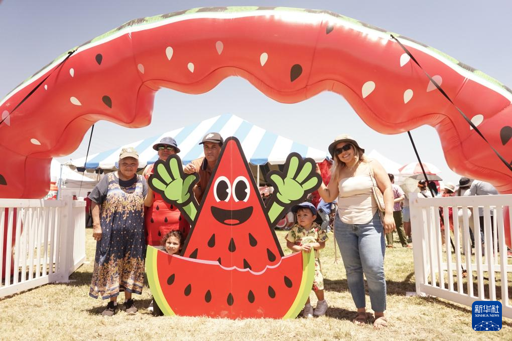 6月22日,人們在美國加利福尼亞州洛杉磯舉行的加州西瓜節(jié)上留影。