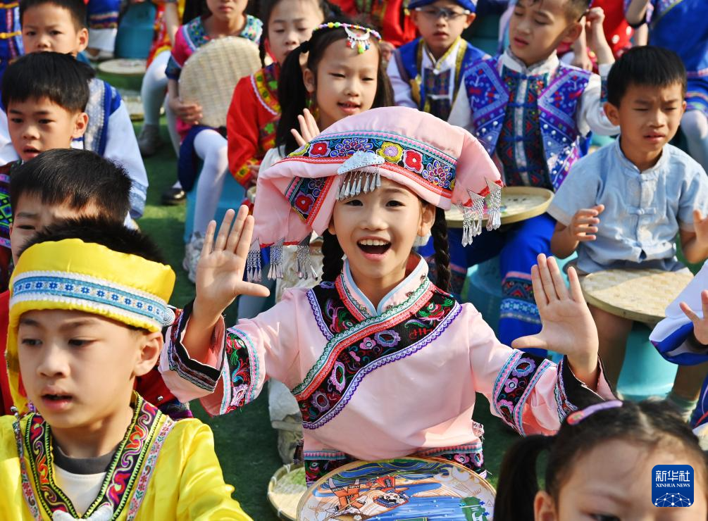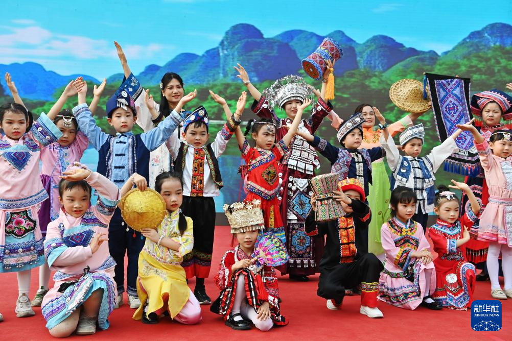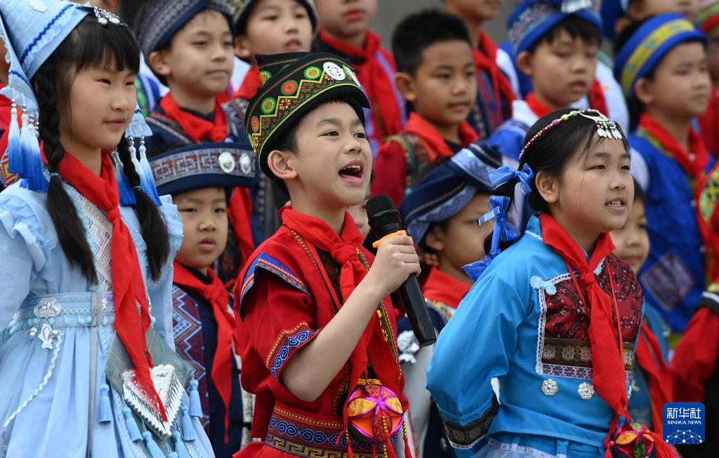 當(dāng)日,廣西南寧市民族大道東段小學(xué)舉行2025年“鑄牢中華民族共同體意識”主題活動暨“廣西三月三”民族藝術(shù)節(jié),孩子們以多種方式喜迎佳節(jié)。