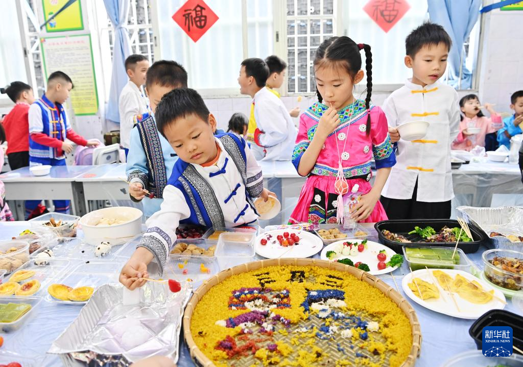 當(dāng)日,廣西南寧市濱湖路小學(xué)舉辦“石榴花開三月三 籽籽同心向未來”活動,通過唱歌、跳舞、美食展示等豐富多彩的活動,迎接傳統(tǒng)節(jié)日“三月三”的到來。
