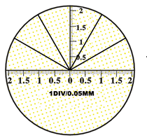5、分劃板最小格值0.05mm,分劃板最大量程 3mm(50倍帶刻度),所有光學鏡片均鍍增透膜